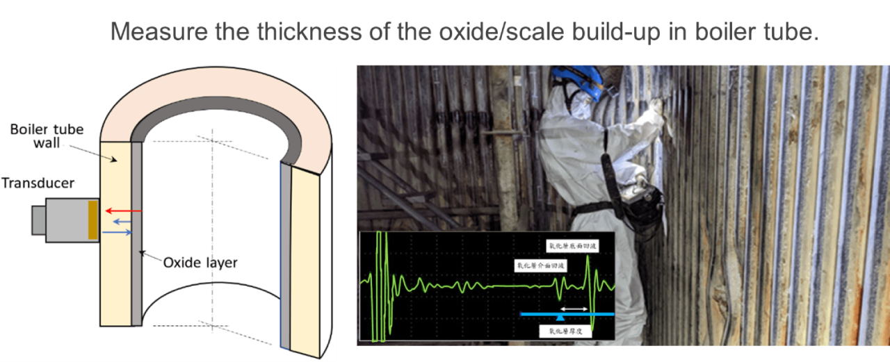 4.) Measure the thickness of oxide/scale build-up on the inside of boiler tubes and helps predict tube life.